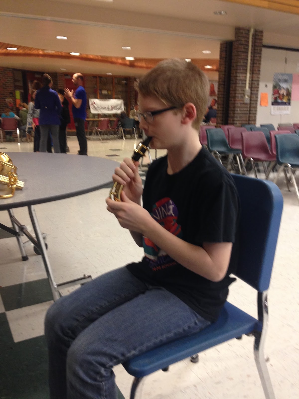 It is hard to believe some days, but L is soon to be 11 and graduating from 5th grade. That means next year he will be in middle school, scary! The fun and exciting process started a few weeks back when the middle school choir, band, orchestra, and art class came to our school to have a talk with just the 5th graders. Our students got to hear all about these fun opportunities and listen to some music. (also fun side note, our principal jumped in on the piano and played while everyone sang, then kept on playing all through both lunch periods!). So last night came the fantastic night of going into the middle school and getting to try a bunch of instruments out in person. Adam had to work that evening, so D, L and I headed out. We had been talking over the last few weeks about what he would like to choose. He was set on playing the saxophone and then came home yesterday adding the cello to the mix. We headed in and he was thrilled to see so many kids he knew from both our current school and our former school. I asked him if that made him feel a bit more comfortable and he agreed it sure did.